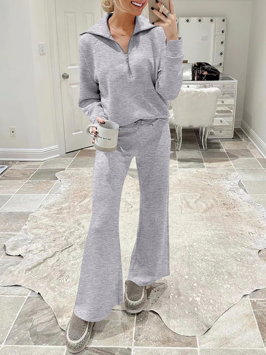 ANRABESS Women 2 Piece Outfits 2025 Fall Fashion Airport Wide Leg Pants Lounge Set Leisure Travel Vacation Clothes Sweatsuits Light Grey X-Large
