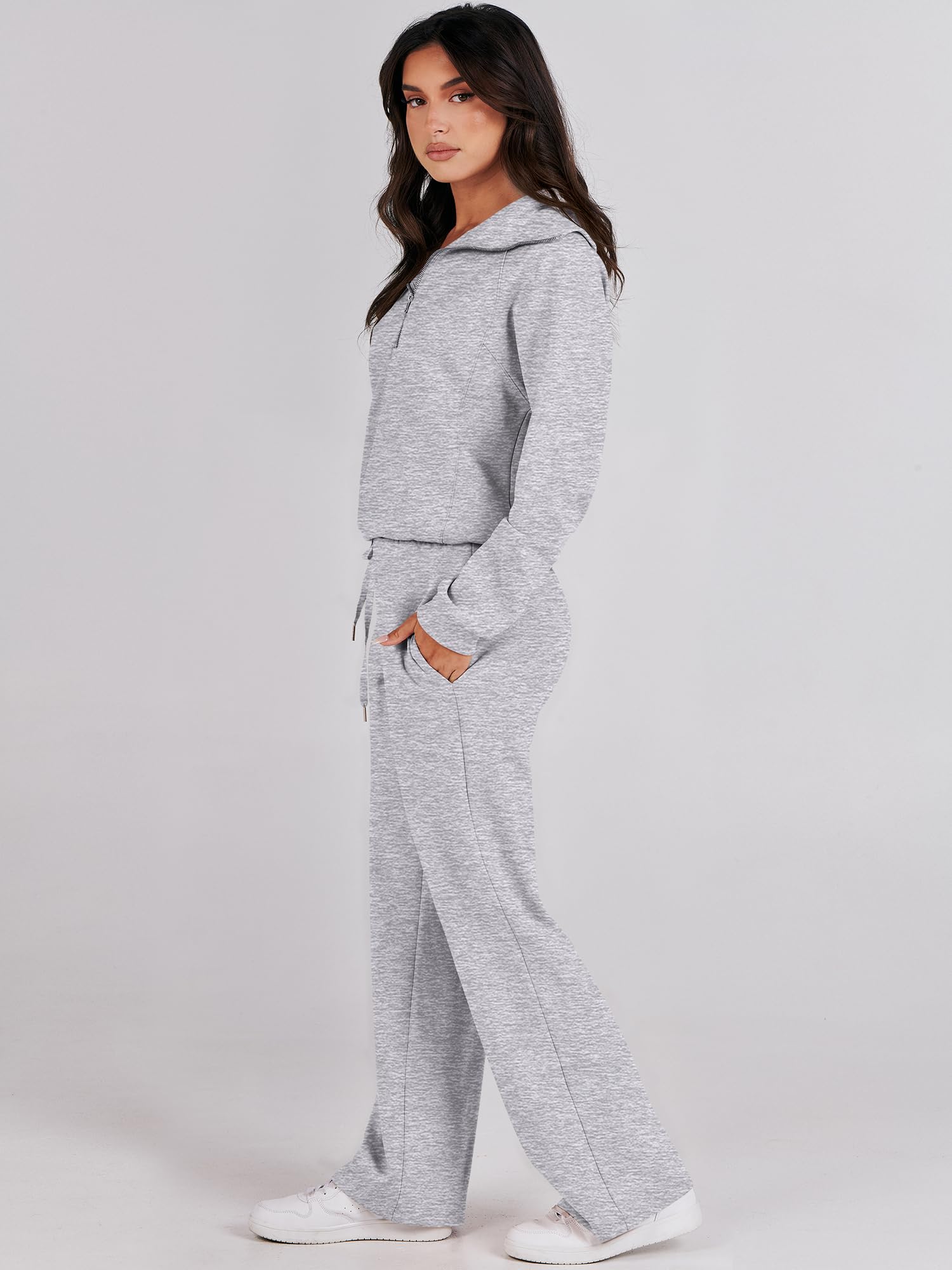 - Features - This Sweatsuit Set featured half zip long sleeve oversized sweatshirt & high waist drawstring wide leg sweatpant for a 2 piece tracksuit set. Matching set sweatpants 2 piece sweatsuit are great for daily life, gym, sport, running, active, lounge, travel, beach, fitness and home.