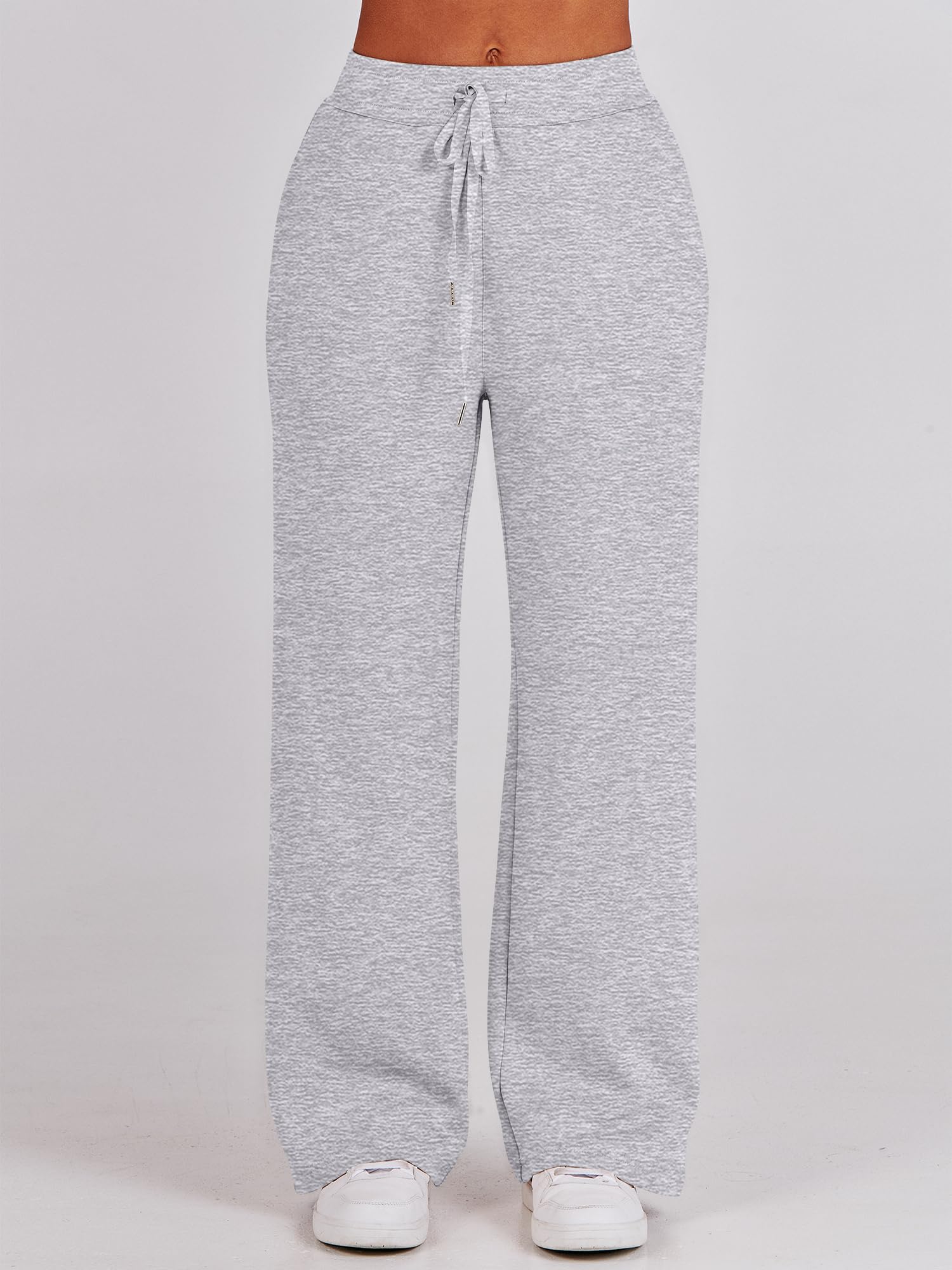 ANRABESS Women 2 Piece Outfits 2025 Fall Fashion Airport Wide Leg Pants Lounge Set Leisure Travel Vacation Clothes Sweatsuits Light Grey X-Large